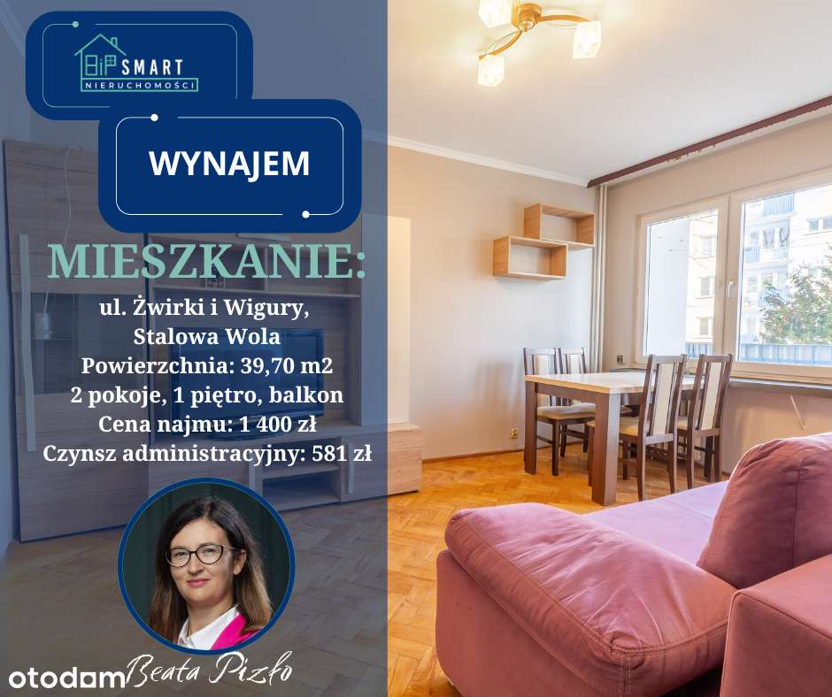 Mieszkanie na wynajem – 2 pokoje, 1 piętro, balkon, Żwirki i Wigury