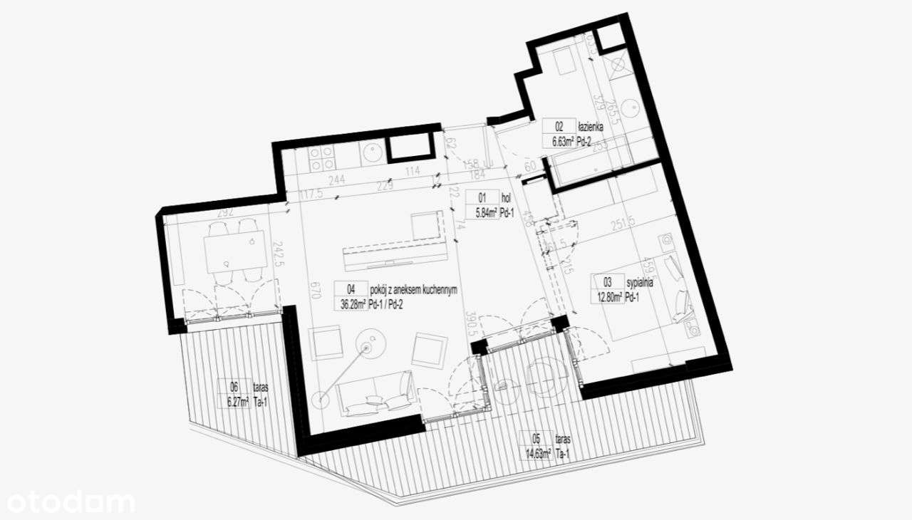 Nowoczesne 2-pokojowe mieszkanie z dużym balkonem
