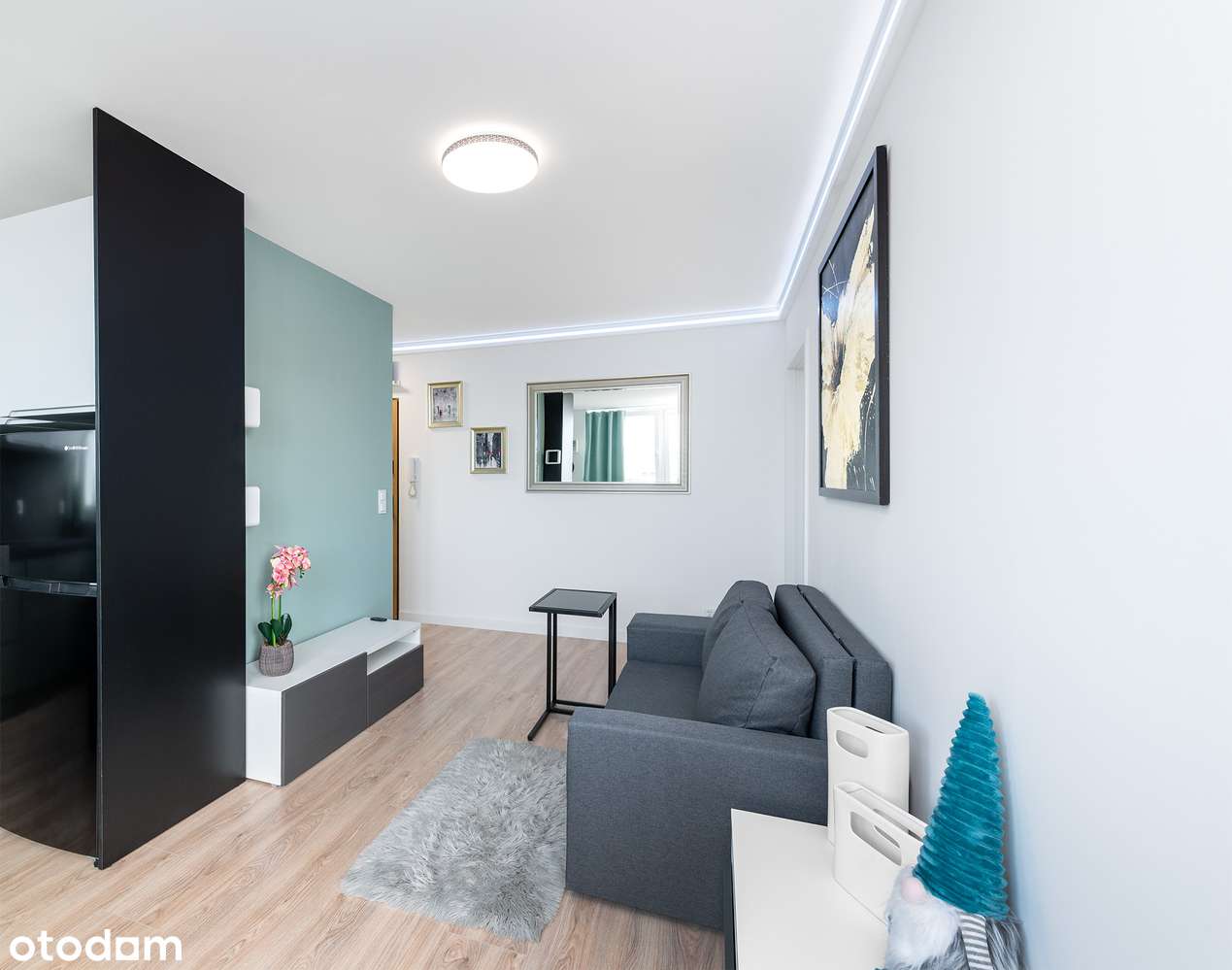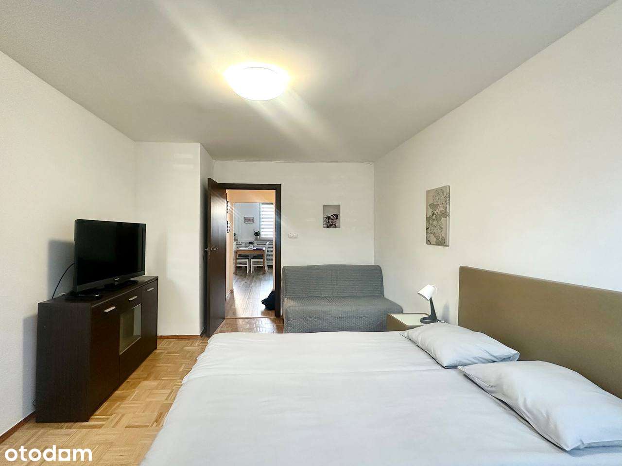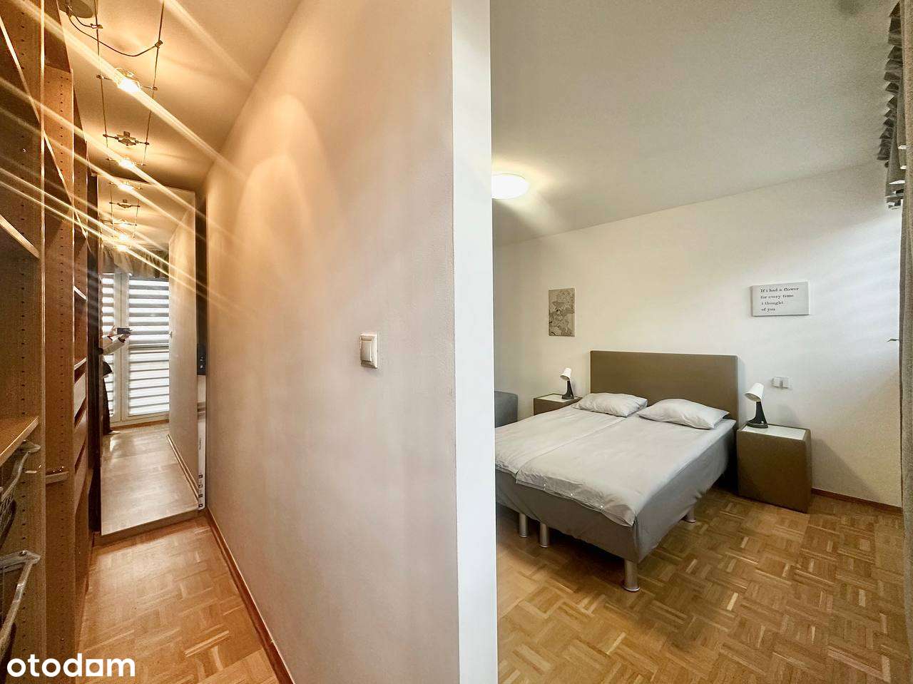 Mieszkanie dla pary. Pokój kinowy, garderoba, sypialnia, łóżko 160 cm.