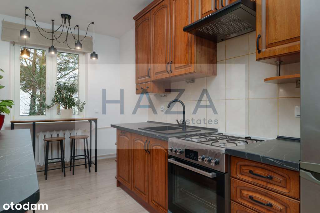 Kawalerka z wydzieloną sypialnią oraz widokiem na Las Kabacki i Park