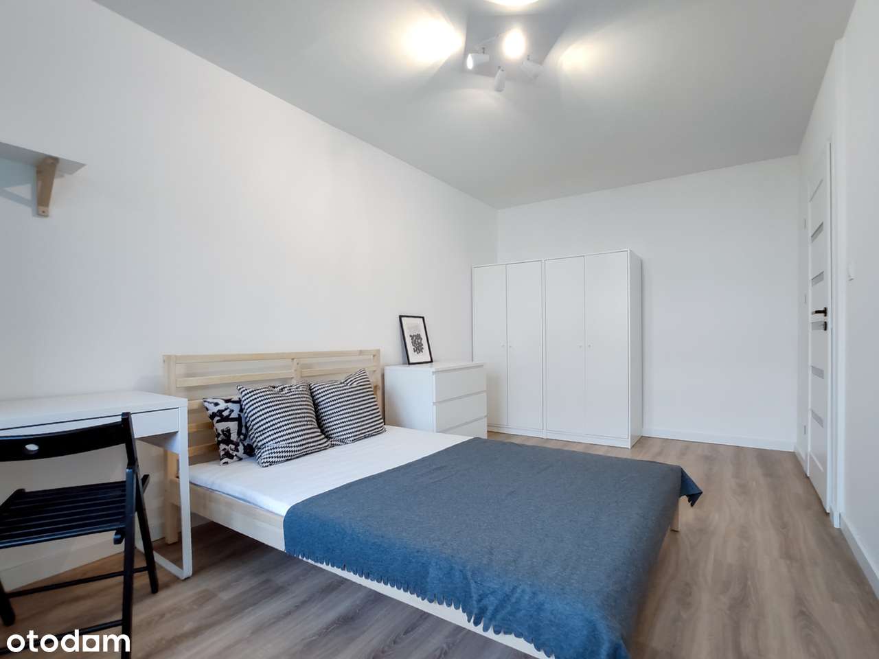 Pokój w nowym budynku wraz z całym wyposażeniem mieszkania.